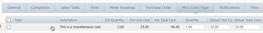 You may need to update miscellaneous costs on a work order to add the actual cost, or just to make corrections to the entry.