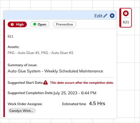 A message now displays to alert users if a work order has a start date that occurs after its end date: