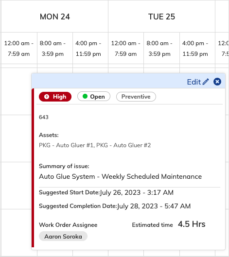 In this release, we've updated the expanded view for work orders in Calendar Beta.