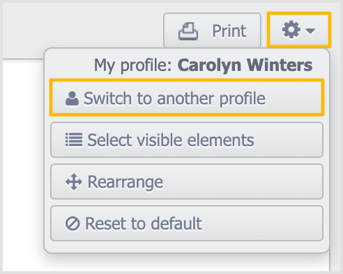 - In the top right corner, click the Settings icon and Switch to another profile:
