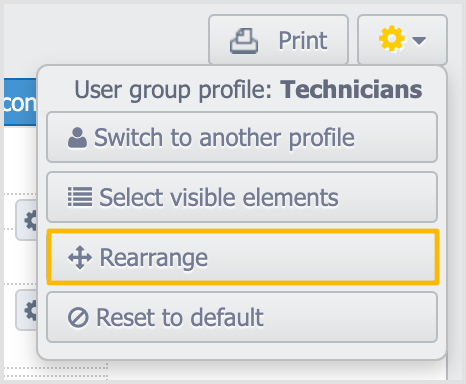 - Click the Settings icon and Rearrange: