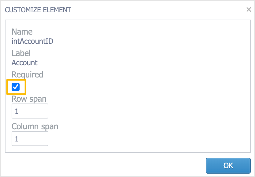 - Select the Required checkbox, and then click OK: