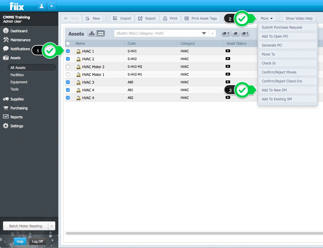 This article will outline how to create a multi-asset scheduled maintenance by an asset category. To take full advantage of this, you will need to have your assets grouped into distinct categories.