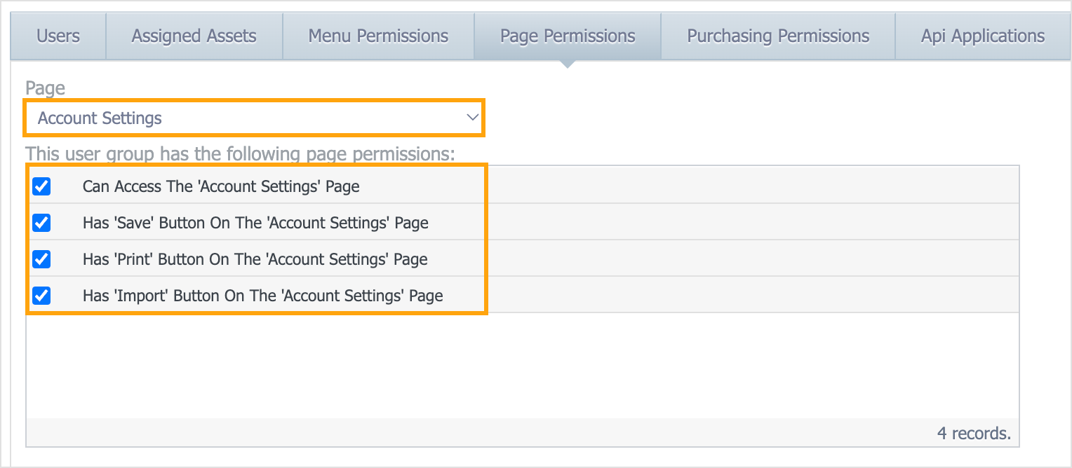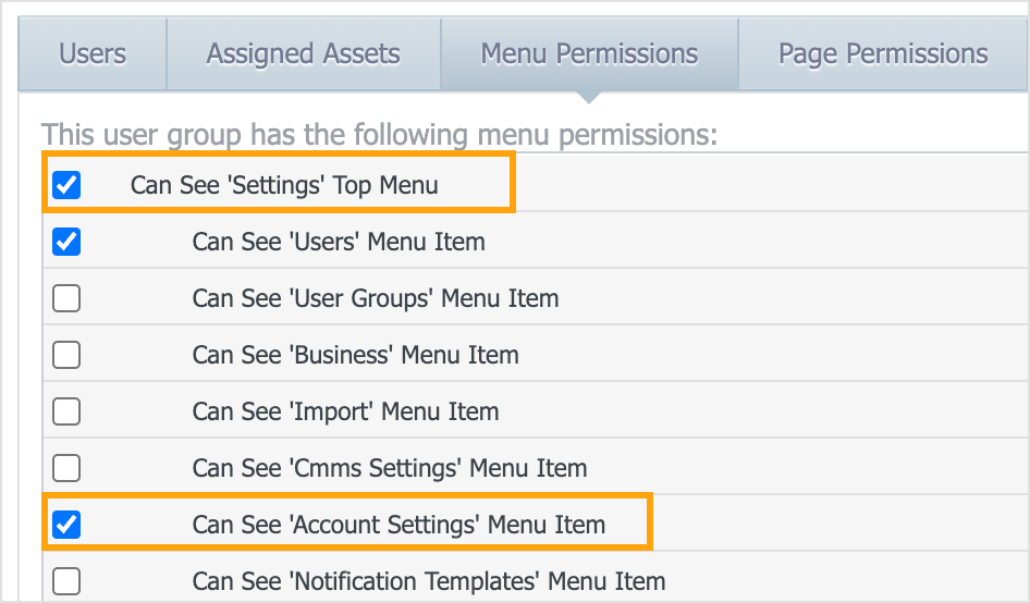 - The Can See Settings and Can See Account Settings Menu Item menu permissions: