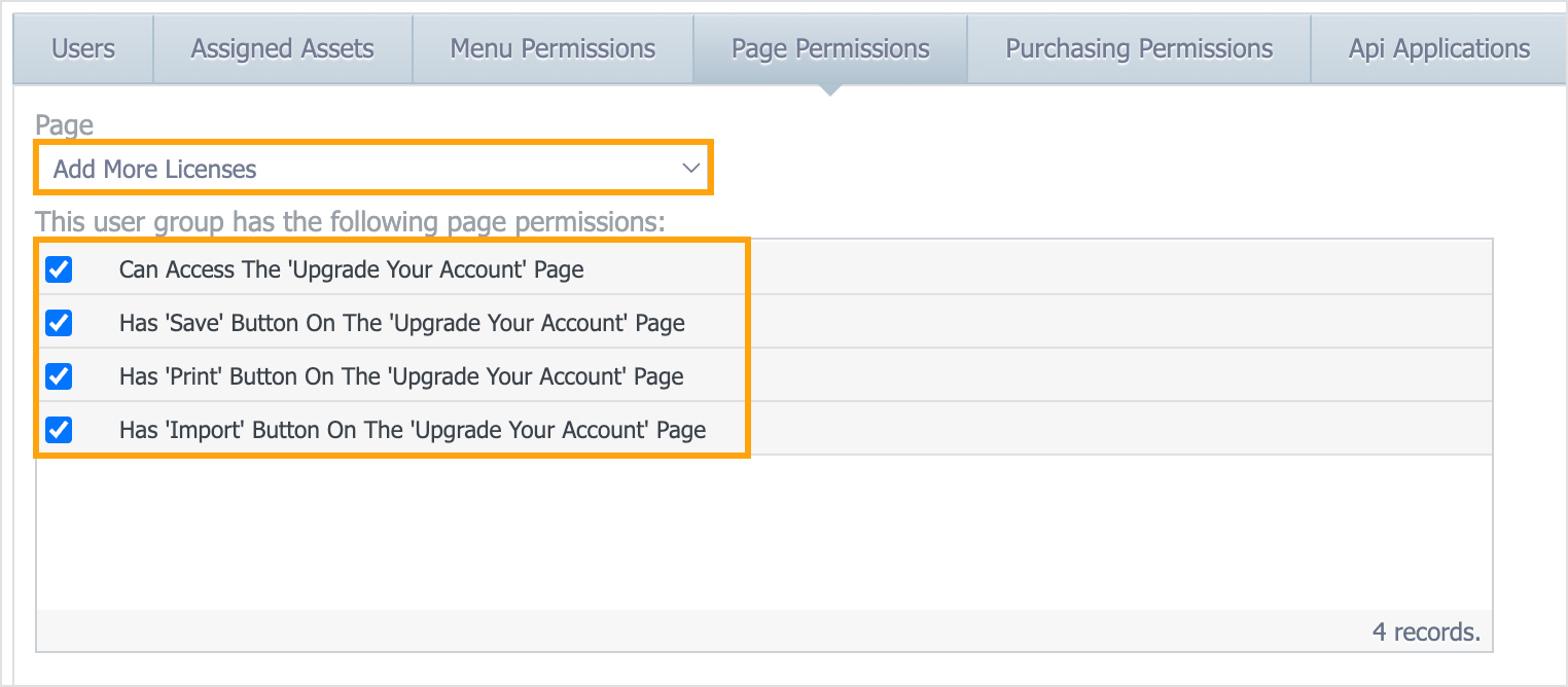This means that an administrator must assign the necessary permissions to a user group that their account owners are part of. Otherwise, the account owners won't be able to add licenses.