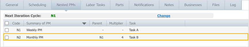 - In Maintenance > Scheduled Maintenance, click the scheduled maintenance record that contains the nested PMs you want to edit.