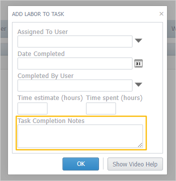 You can now enter task completion notes when adding labor to tasks in the web app (v5):