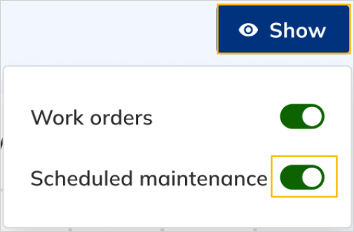 - Click the Show button in the filters bar and toggle on Scheduled Maintenance: