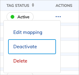 - Click the Actions menu in the row for the sensor tag you want to deactivate, and select Deactivate: