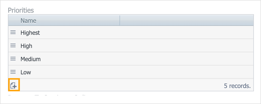 | Priorities | The priority levels that you can assign to maintenance work. The order of the list determines the relative priority level, from top to bottom. In others words, the priorities at the top of the list are the most urgent. |