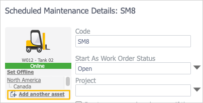 This method is better suited for records that have two or three assets. To create multi-asset scheduled maintenance in Scheduled Maintenance: