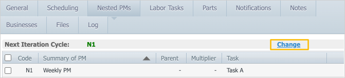 By default, the scheduled maintenance record will begin with the first iteration of the nested PM. However, you can select which another one to begin with, if necessary. For example, perhaps you just created this scheduled maintenance record, but the upcoming maintenance is the fourth iteration and requires both weekly and monthly tasks.