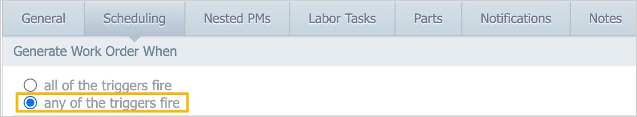 Some assets may require preventive maintenance once every season. You can set this up as a scheduled maintenance record with four time-based triggers.