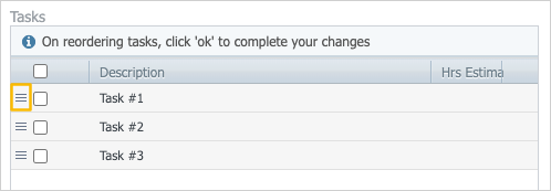 The Task List tab is displayed by default: - Drag and drop the task by its Reorder button. These are located on the left of a task's checkbox: