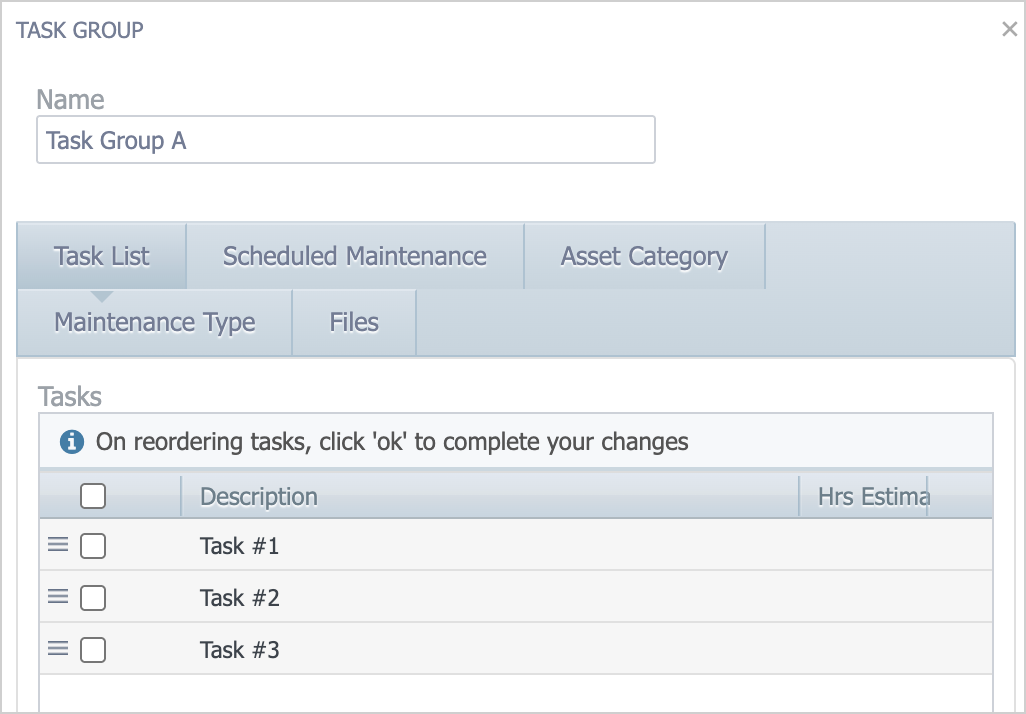 - In Maintenance > Task Groups, open the task group with the task you want to edit: