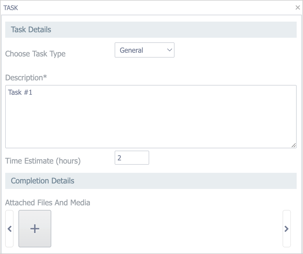 Make any necessary changes to its properties: task type, description, time estimate, and attachments: