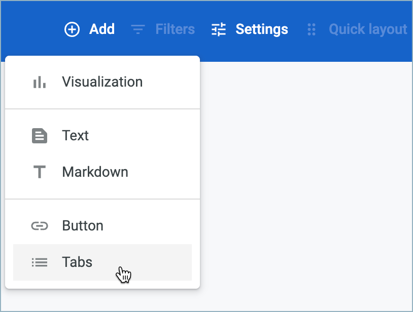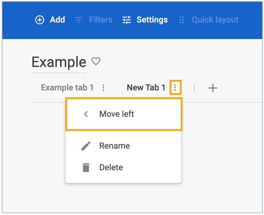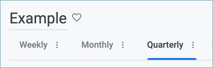 When creating or editing dashboards in Analytics, you can organize your content into tabs for easier navigation. For example, you could create separate tabs for weekly, monthly, and quarterly stats so that users can easily find the exact data they're looking for: