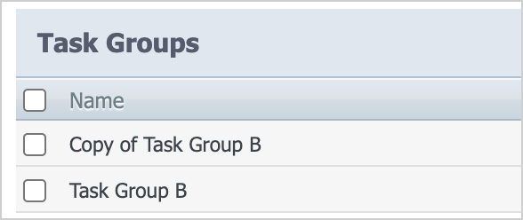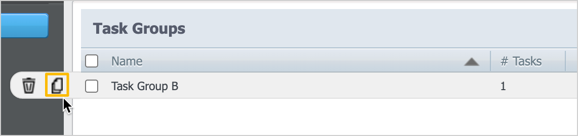- In the task groups list, hover over the task group you want to delete and click the Duplicate button that appears: